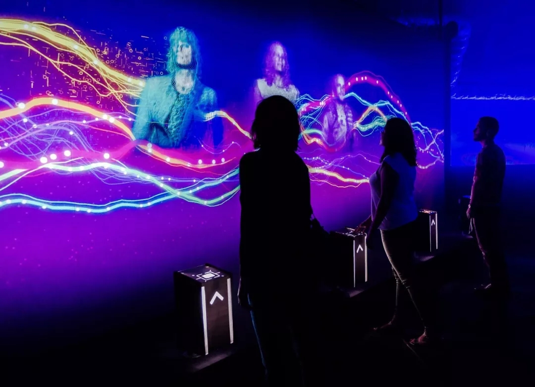 体验者首先需要被12台扫描仪3D扫描“小我私家身份”获得小我私家的成像视图,,,,,,,,随后随着人群,,,,,,,,进入到一个想象的未来天下,,,,,,,,体验一场感官刺激的视觉之旅。。。。。。。